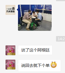 這不,剛準備發(fā)出這個消息的時候,前方展會同時發(fā)來捷報,又喜獲阿根廷客商大單,讓我們在這次海內(nèi)外商品交流盛會上收獲更多客源,建立更廣闊的渠道吧!!